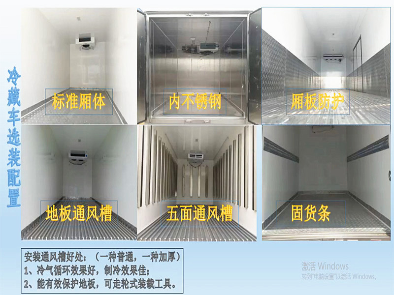 | 廂體配置:采用我公司液壓吸附一體成型生產線制造,保溫性能達到國家A級標準,廂體內外面料采用最新款納米玻璃鋼(不吸光、隔熱性好、硬度強、抗氧化),廂體厚度為8cm,內襯骨架為防銹處理武鋼優(yōu)質輕鋼型材,保溫材料為無空隙填充聚氨酯發(fā)泡,廂體底部為鋁合金花紋板或選平面納米玻璃鋼,廂體采用鍍鋅不銹鋼包角,加厚型鋁合金包邊,后門框為不銹鋼,加厚型不銹鋼后門合頁及鎖件,廂體內部采用LED照明燈及廂體示寬燈。 選裝冷機:可根據客戶的用車需求選擇不同的機組,客戶可選-5℃、-10℃、-15℃、-18至-20℃冷藏機組 ,冷藏機組品牌有國產勁達K牌、韓亞、漢雪、華泰、松寒、凱雪、超酷..等冷藏機組,進口冷藏機組品牌有:美國開利、美國冷王。冷藏機組分為獨立機組和分體機組!根據您的用車需求推薦合適的冷藏機組! 該車型可選裝“制冷+加熱”雙溫機組(控制溫度范圍為+20℃至-18℃)可用于東北地區(qū)及內蒙 新疆 西藏等嚴寒地區(qū)。 選裝配置:導軌肉鉤、T型通風槽、右側開側門、溫度實時監(jiān)控帶打印裝置、裝海鮮廂體內部面料必須選裝不銹鋼制造、可選裝12V-24V外接電源(車輛在停止時,廂體通過外接電源進行制冷)。